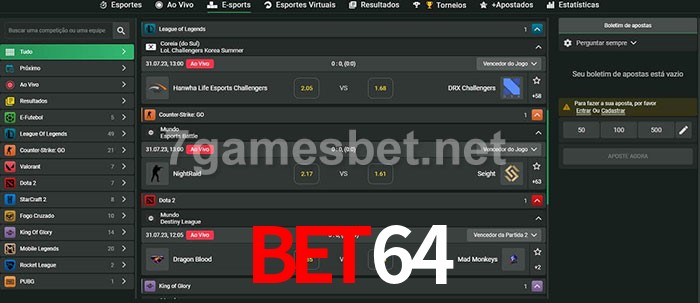 O Bet64 oferece uma grande seleção de opções de apostas em e-sports com probabilidades competitivas